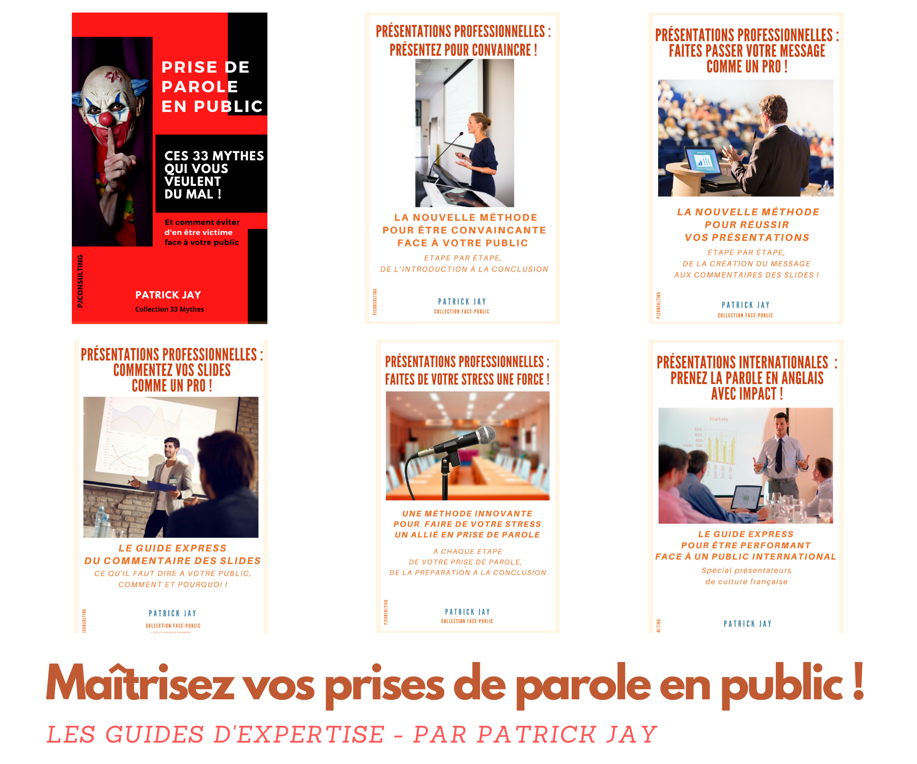 Retrouvez toutes les techniques et méthodes efficaces de prise de parole en public dans les six guides d'expertise par Patrick JAY
